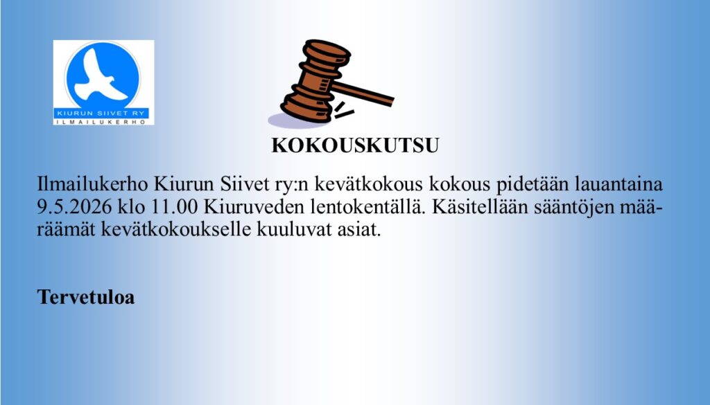 Kevätkokous la 9.5.2026 klo 11.00 Kiuruveden lentokentällä