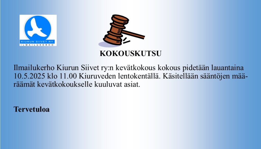 Kevätkokous la 10.5.2025 klo 11.00 Kiuruveden lentokentällä
